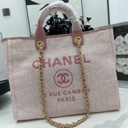 This season’s edition of the beloved Neverfull MM tote features a braided leather strap in tender colors. The trim’s cream