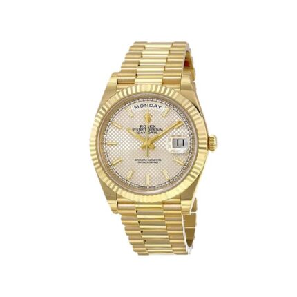 The Rolex Day-Date 228238 Yellow Gold Silver Diagonal Dial Replica is a stunning watch. It features a 904L stainless steel