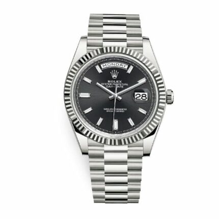 The Rolex Day-Date 228239 Silver Black Dial Replica is a luxurious watch that is sure to impress. It features a