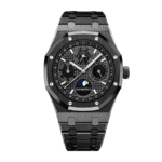 The Audemars Piguet Royal Oak Perpetual Calendar 26579CE.OO.1225CE.01 Replica is a high quality watch. It features a black ceramic case with a 904L stainless steel bezel and a sapphire crystal. The movement is an automatic AP 5134 with a power reserve of 60 hours and a precision of (-3/+3 sec/day) within COSC certification limits. The dial is black with stick and dot indices and 904L stainless steel stick hands.