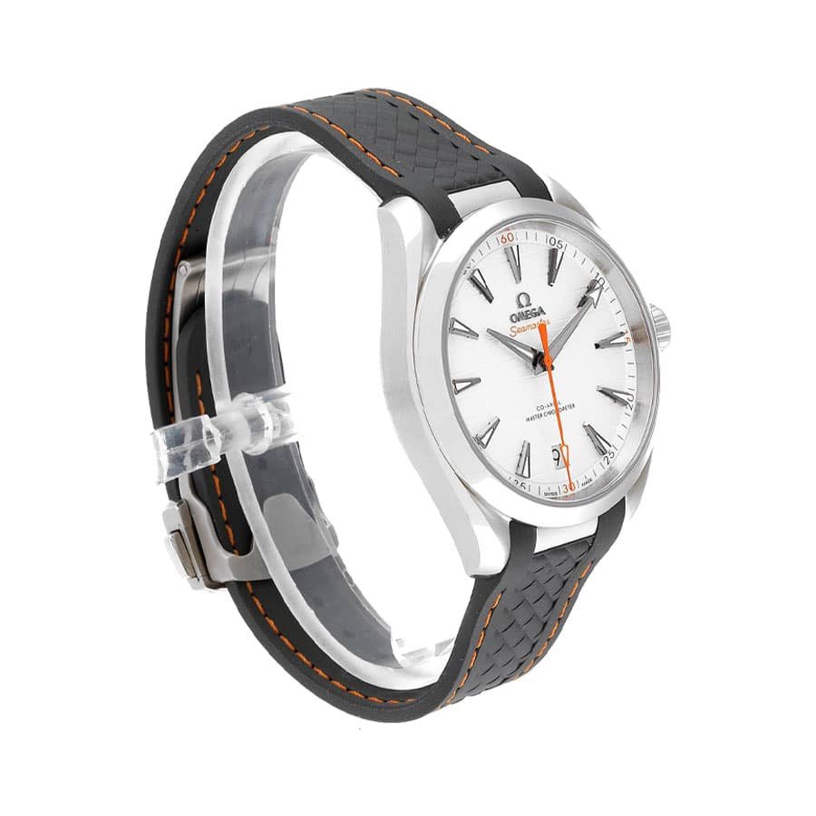 欧米茄海马系列 Aqua Terra 150M 钢 220.12.41.21.02.002 银色表盘复刻表是一款豪华手表。它采用 904L 不锈钢表壳和表圈。均为银色调。表壳尺寸为 41.00 毫米,厚度为 13.20 毫米。并配有蓝宝石水晶镜面。表链由橡胶制成,可调节以适合所有尺寸。表盘为白色,带有棒状和点状刻度。指针为 904L 不锈钢箭头。