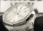 The Audemars Piguet Iced Out Replica is a luxurious watch that is sure to turn heads. It features a 904L stainless steel case and bezel. with a sapphire crystal and a gem-set bezel color. The movement is an automatic AP 3120 caliber with a power reserve of 60 hours and a precision of (-3/+3 sec/day) within COSC certification limits. The Royal Oak bracelet is adjustable and made of 904L stainless steel with a gem-set folding clasp.