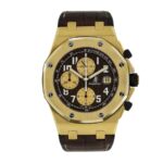 The Audemars Piguet Royal Oak Offshore Replica is a luxury watch that is sure to turn heads. It features a 904L stainless steel case and bezel. both in a beautiful yellow gold color. The 42mm case houses an automatic movement with a caliber of AP 2226 / 2840 and a power reserve of 60 hours. The precision of the watch is within COSC certification limits. and the second hand has a sweep motion. The bracelet is made of alligator leather and is adjustable for all sizes. with a 904L stainless steel deployment clasp with a push button release.