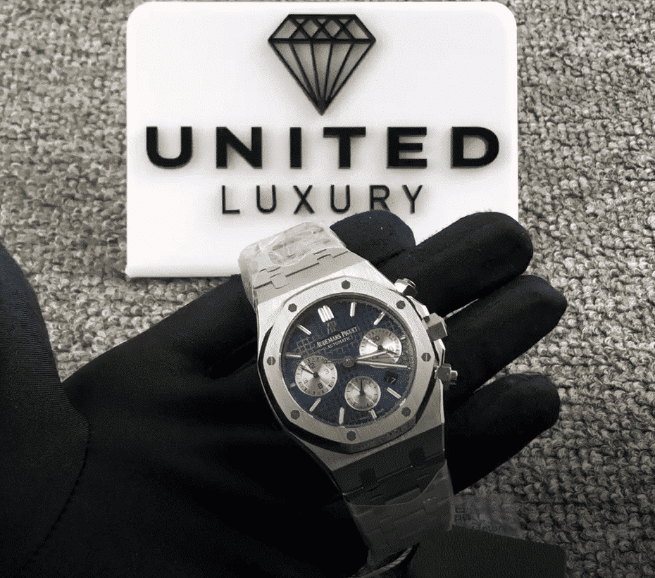 The dial is a blue Grande Tapisserie with stick/dot indices and Royal Oak hour-markers. The hands are 904L stainless steel sticks. The watch has passed the 30m water resistance test and is protected by a full 2 year International United Luxury warranty. It is a perfect 1:1 super clone Swiss mechanism watch that even your jeweler won’t be able to tell the difference.
