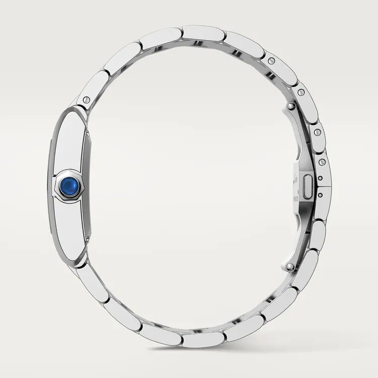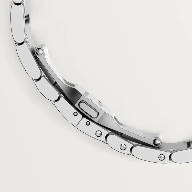 Santos watch, medium model, Manufacture mechanical movement with automatic winding, caliber 1847 MC. Steel case, 7-sided crown set with a