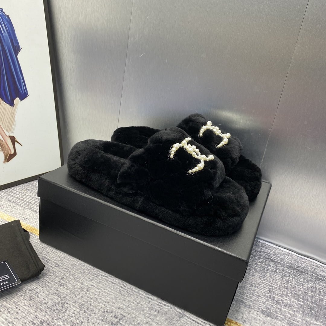 Chanel 23 new wool-drag thick sole wool slippers size: :35-40 note shoes size when you fill shipping address