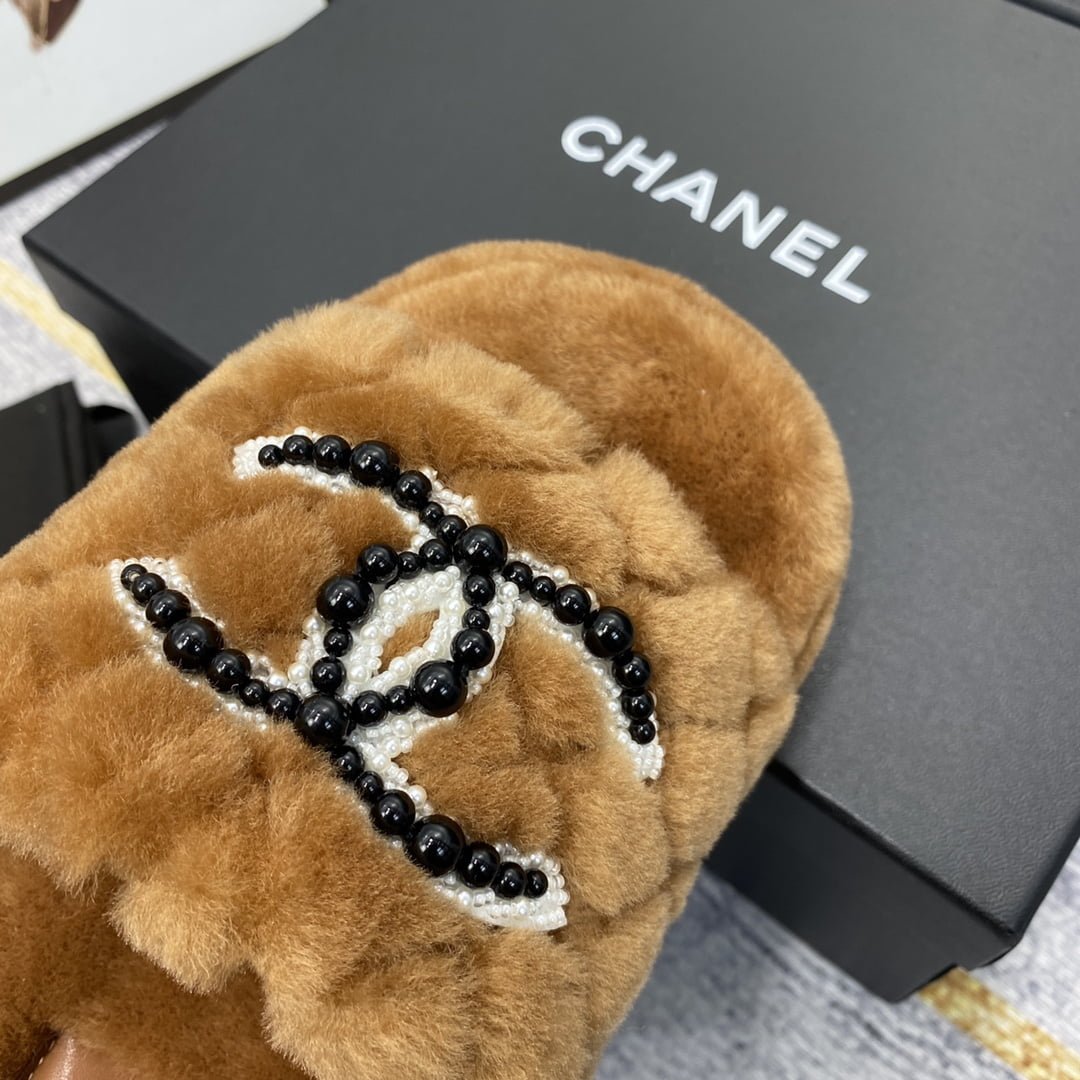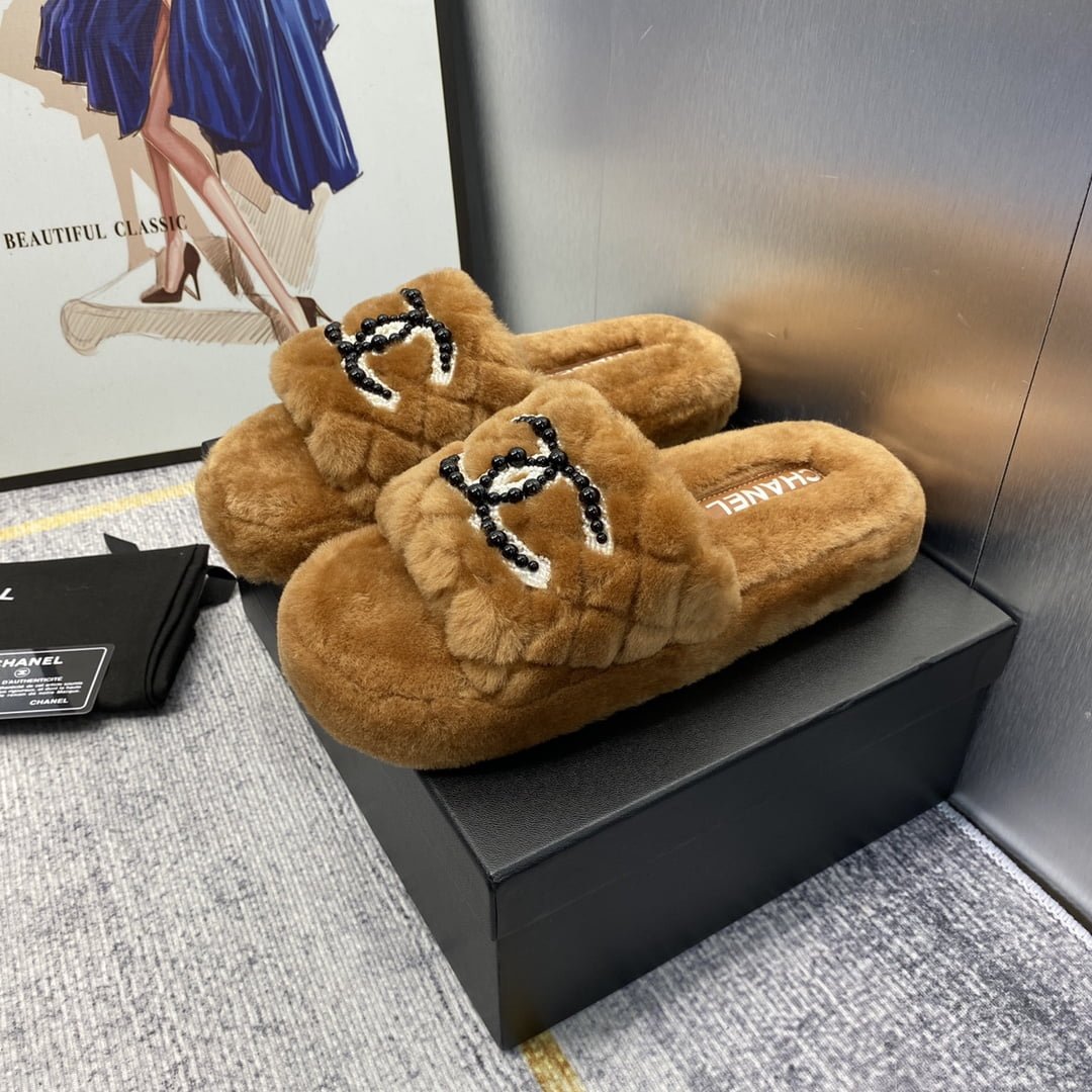 Chanel 23 new autumn/winter hair drags one of the absolute autumn/winter must-have single products 💫 small perfume table thick sole wool slippers high quality new fur diamond check electric embroidery upper with lamb wool inner double C fastener color perfect not easy to oxidize 🆗 simple atmosphere delicate feeling full of no problem lady single product ❣️ shoe inner cushion lamb wool, the original mold water table big sole! Base thickness: about 3.5cm
