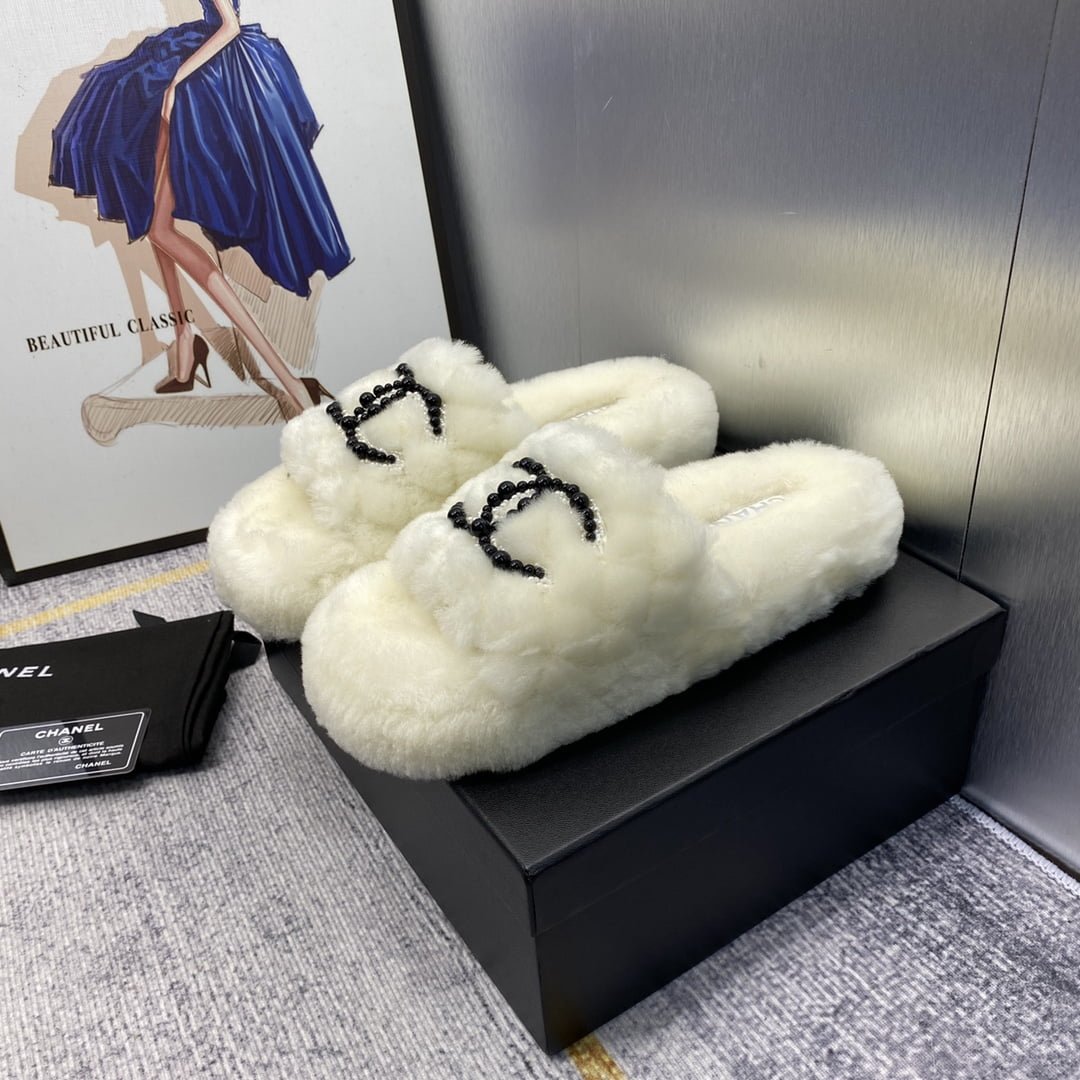 Chanel 23 new wool-drag thick sole wool slippers size: :35-40 note shoes size when you fill shipping address