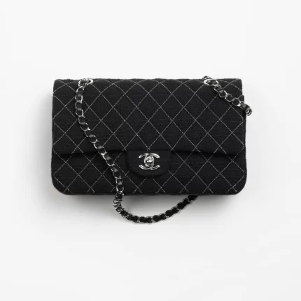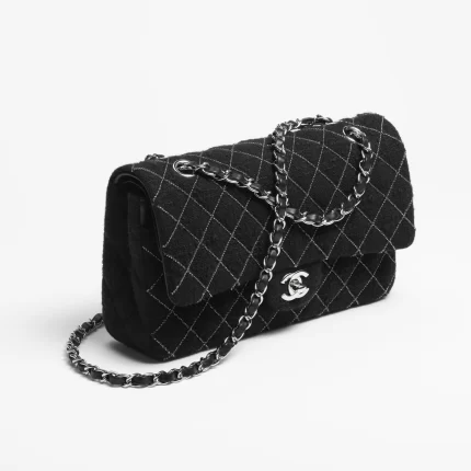 CHANEL / CLASSIC HANDBAG Wool Tweed & Silver-Tone Metal Black