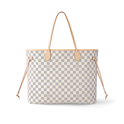 The Neverfull GM tote unites timeless design with heritage details. Crafted from fresh Damier Azur canvas with natural cowhide trim.