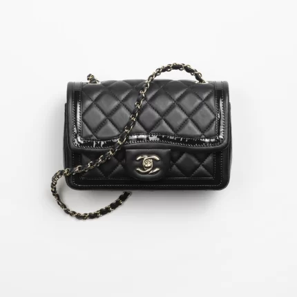 CHANEL / MINI FLAP BAG Lambskin, Patent Calfskin & Gold-Tone Metal Black