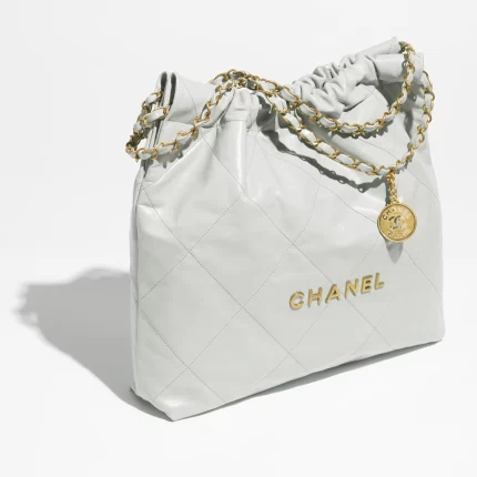 CHANEL / CHANEL 22 HANDBAG Shiny Calfskin & Gold-Tone Metal Light Blue