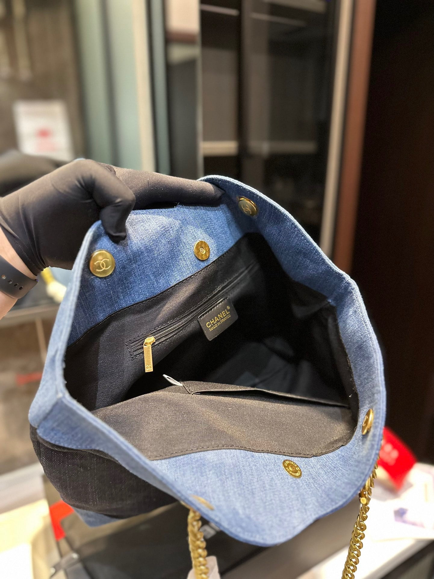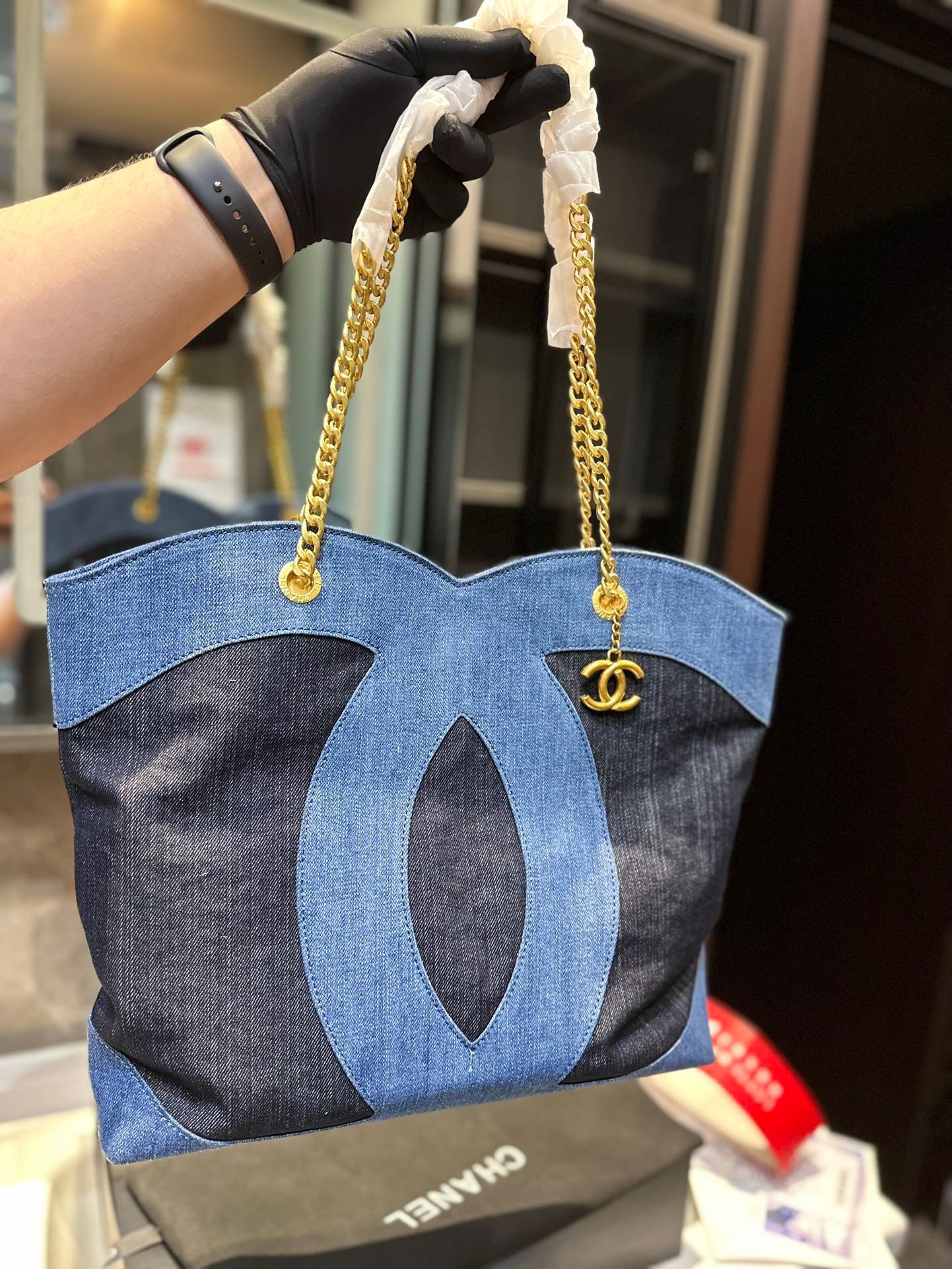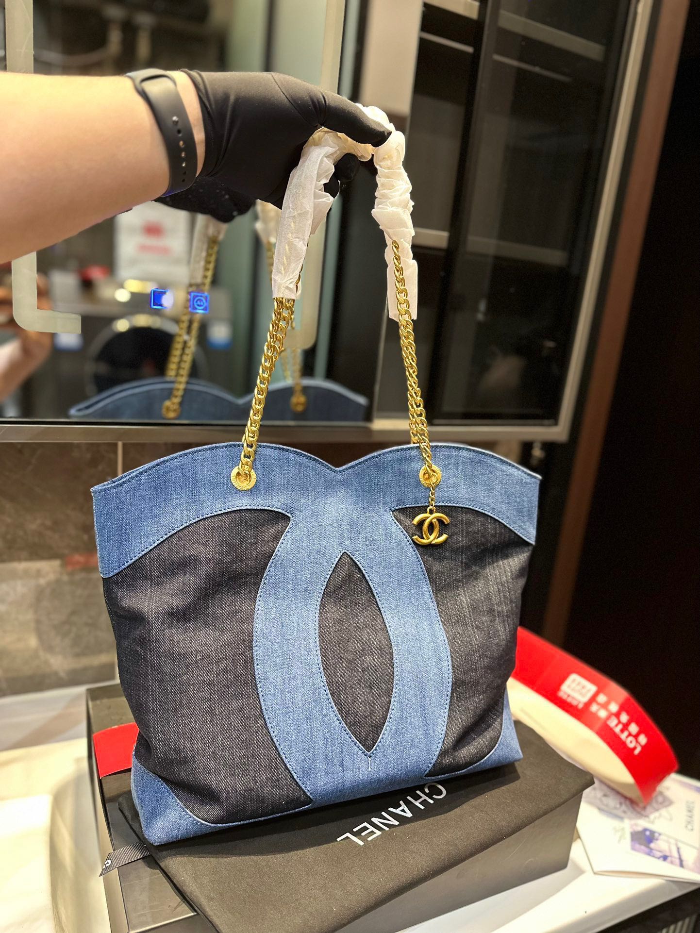Classic explosive denim shopping bag 】 Chanel Chanel imported ramie cotton denim shopping bag beach bag any details of the version of fabric, the version of embroidery LOGO color back to the many stars love interpretation, the street shot exploded 💃💃 super hot 🔥🔥 shopping holiday trip essential ❕ real white rich Mei special bag ❤️❤️ summer essential 🐱 Chanel canvas bag, Not general market goods! 💓💓 summer beach afternoon tea is refreshing!! 👜 It’s beautiful! [Naughty]size: 33x 32