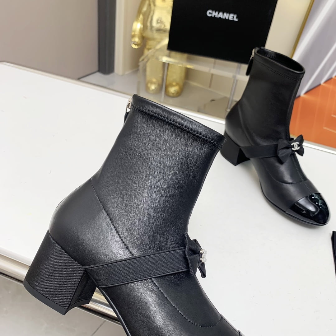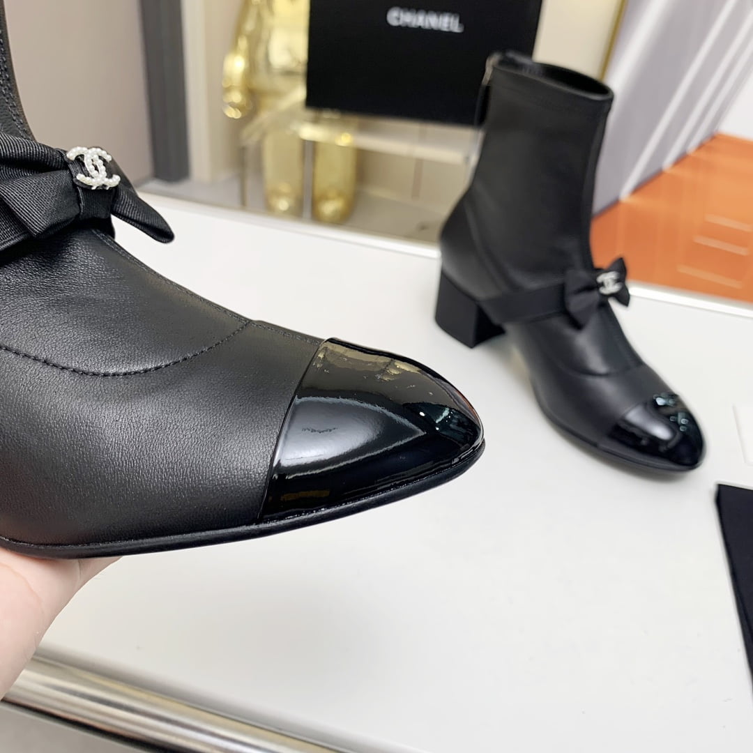 Chanel elastic sheepskin bow thick high heel cool boots, latest slim high heel boots ~ socks boots ~