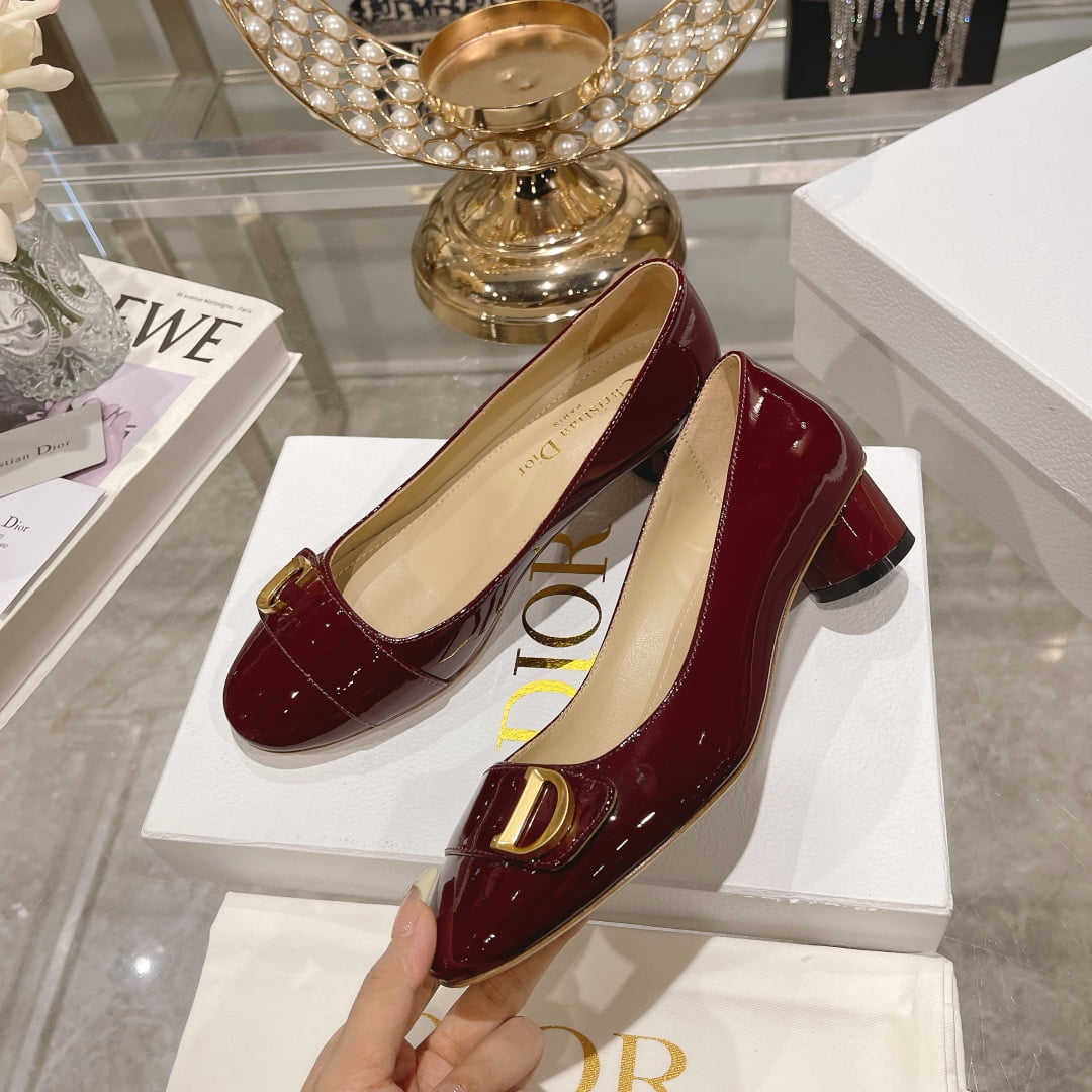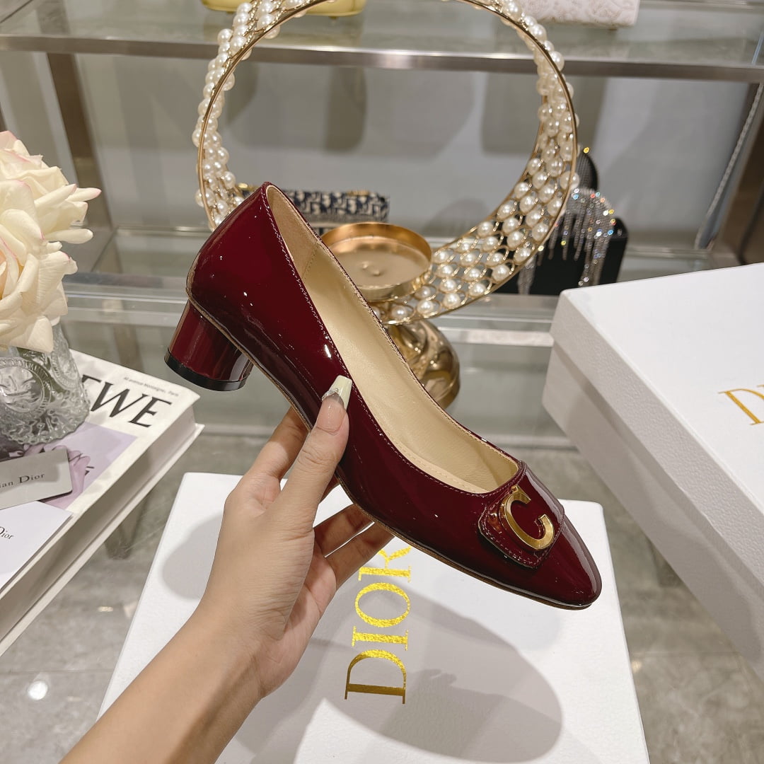Dior 2023 new C ‘EST thick heel square head women’s single shoes red size:34-40 note shoes size when you fill shipping address