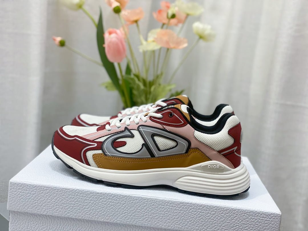 The new B30 sneakers conform to the trend of the retro market Dad Shoes style shoes The Dior logo on the tongue also indicates that this pair of shoes is B30 model! B30 uses fine texture leather and mesh fabric material to splicate into the shoe body, the shoe body on both sides of the prominent letter CD to indicate identity, the shoe body many lines outline details make the shoe look not so monotonous, vintage flavor