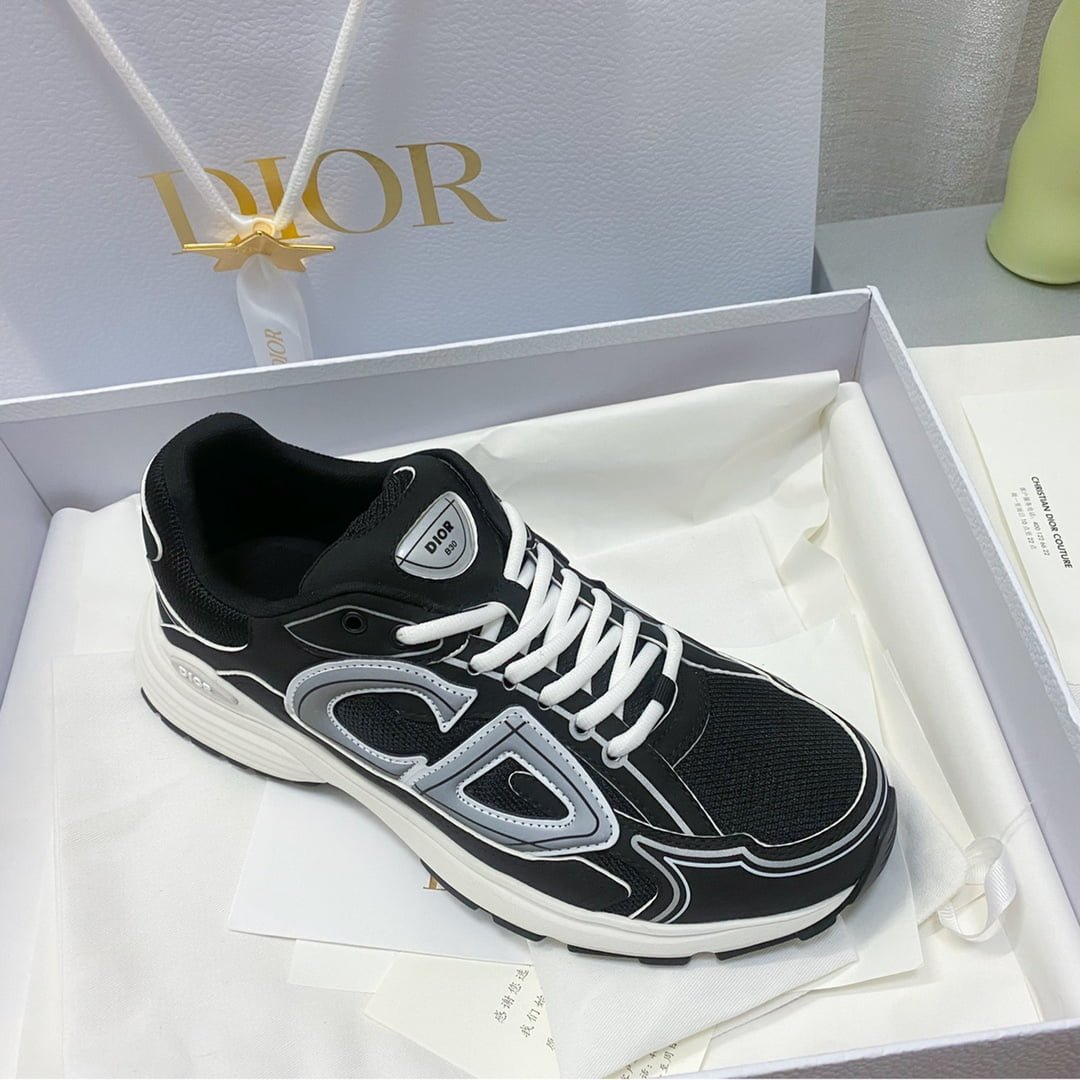 The new B30 sneakers conform to the trend of the retro market Dad Shoes style shoes The Dior logo on the tongue also indicates that this pair of shoes is B30 model! B30 uses fine texture leather and mesh fabric material to splicate into the shoe body, the shoe body on both sides of the prominent letter CD to indicate identity, the shoe body many lines outline details make the shoe look not so monotonous, vintage flavor