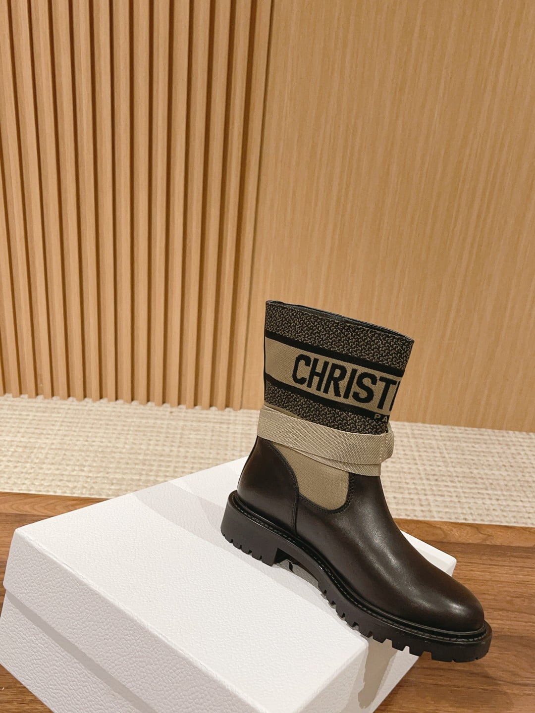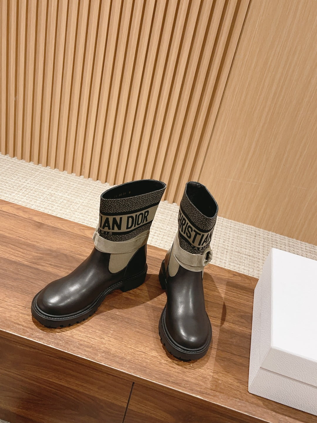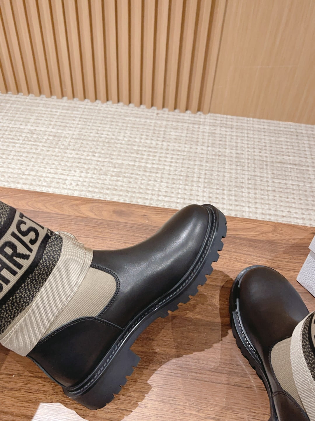 Dior autumn and winter boots retro work boots a good to wear beautiful and handsome material: upper imported calfskin splicing the latest imported technology electric embroidery fabric (not the market ordinary flying fabric)+ water dyed leather inner foot (not the market sheepskin inner)+ original mold TPU outsole + original mold opening letter buckle + the latest original box packing heel height :3CM size :35-40