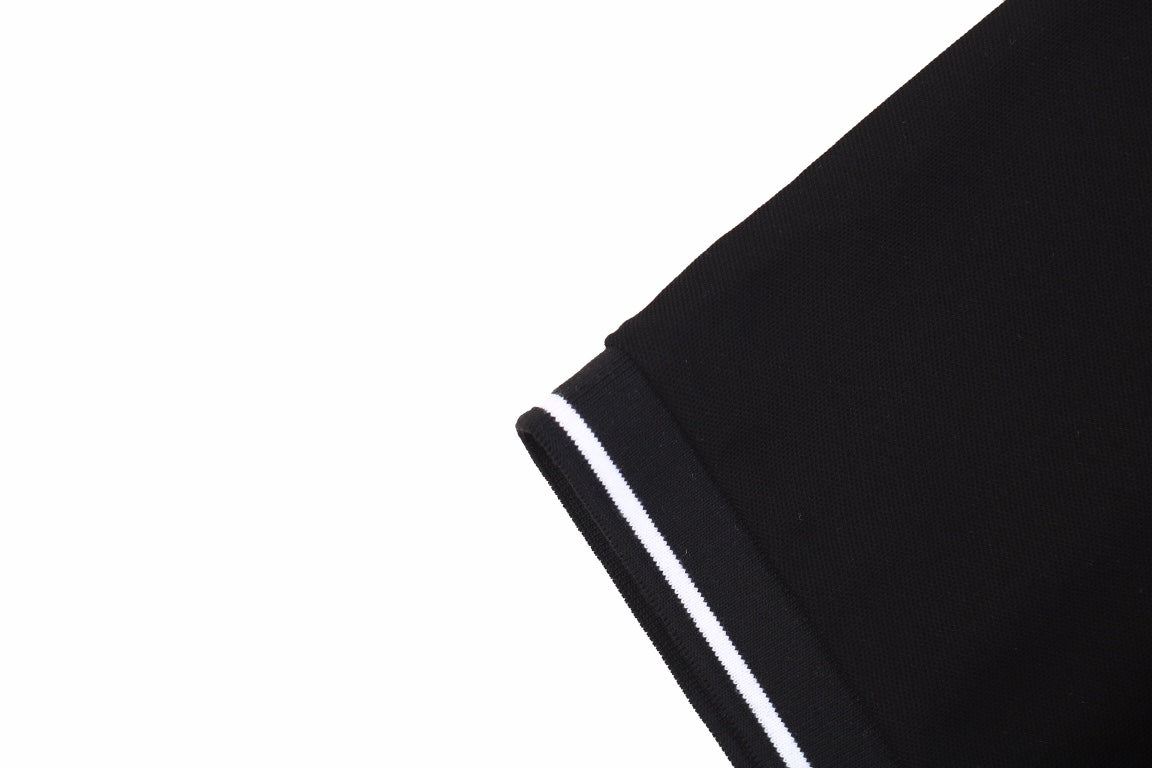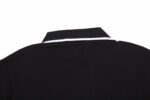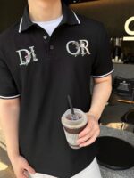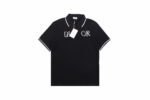 This Dior polo shirt features a floral logo design. It is black with white trim on the collar and sleeves. Perfect for an elegant and stylish look.