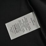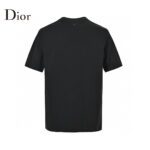 This Dior t-shirt features a unique design with the brand name and a stylized safety pin graphic. along with the signature Christian in elegant script. The sleek black background emphasizes the bold and creative design. making it a fashionable and distinctive addition to any wardrobe.