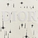The Dior Starry Sky T-Shirt in white is a striking blend of elegance and contemporary style. Made from high-quality cotton. this t-shirt ensures a soft and comfortable feel. The design features an embroidered DIOR logo across the chest. surrounded by a captivating starry sky pattern in black. creating a beautiful contrast against the white fabric. The celestial theme adds a touch of whimsy and sophistication. making this t-shirt perfect for both casual and dressier occasions. Pair it with jeans or tailored trousers for a versatile and stylish look that embodies the timeless charm of Dior.
