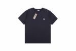 Navy blue t-shirt featuring a small. minimalist Dior logo on the chest. Simple and elegant design perfect for any casual outfit. Comfortable and stylish for everyday wear.