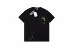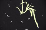 Black t-shirt featuring a neon Dior logo with a splattered paint effect. Bold and artistic design perfect for a unique look. Comfortable and stylish for everyday wear.