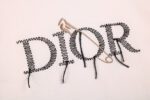 This Dior t-shirt features a unique tools and logo design. It is white with black detailing. Perfect for a bold and fashionable look.