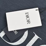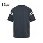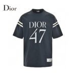 This Dior t-shirt features a bold DIOR 47 graphic on the front. The shirt is dark grey with white stripes on the sleeves. A small Dior label is present at the bottom. The casual design offers a stylish and sporty look.