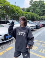 Black sweatshirt with white 1977 print on the chest. Classic crewneck design. Comfortable and perfect for everyday wear.