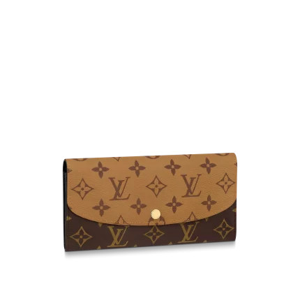 This edition of the Emilie wallet combines Monogram and Monogram Reverse canvas for a sophisticated. modern look. Distinguished by its