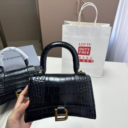 Balenciaga hourglass crocodile with black buckle size S: 19*8*21cm L: 23x10x24cm