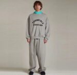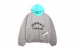 This grey Fear of God Essentials hoodie features a bold black ESSENTIALS FEAR OF GOD logo on the front. It has a unique bright blue drawstring hood that adds a pop of color. Made from soft. high-quality fabric. it’s perfect for casual wear. Stay comfortable and stylish with this standout piece