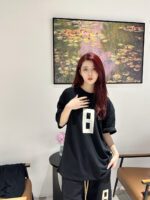 This Fear of God t-shirt features a bold number 8 graphic on the front. The black color provides a sleek and modern look. Made from high-quality cotton. it offers both comfort and style. Perfect for a minimalist yet striking fashion statement.