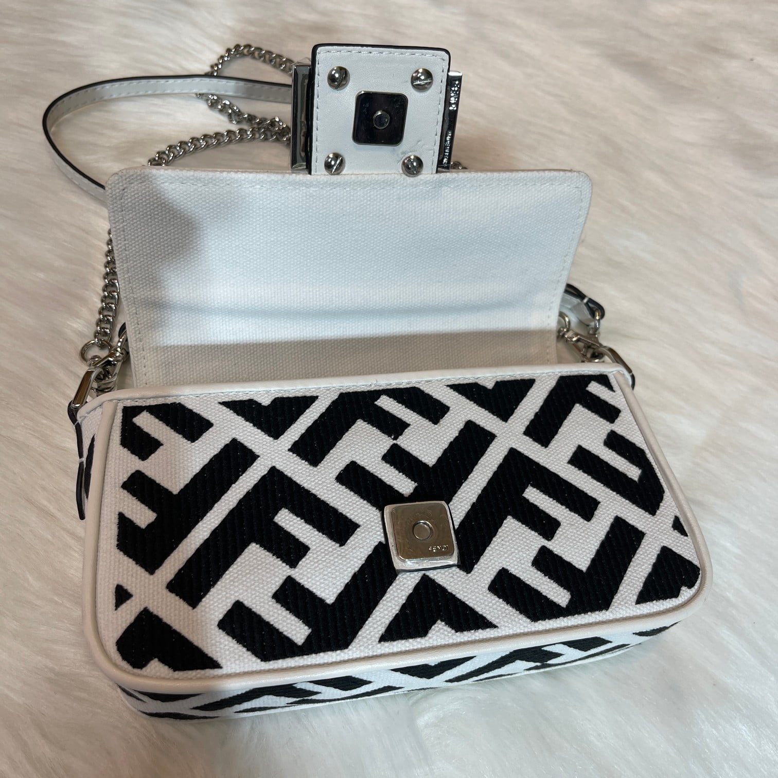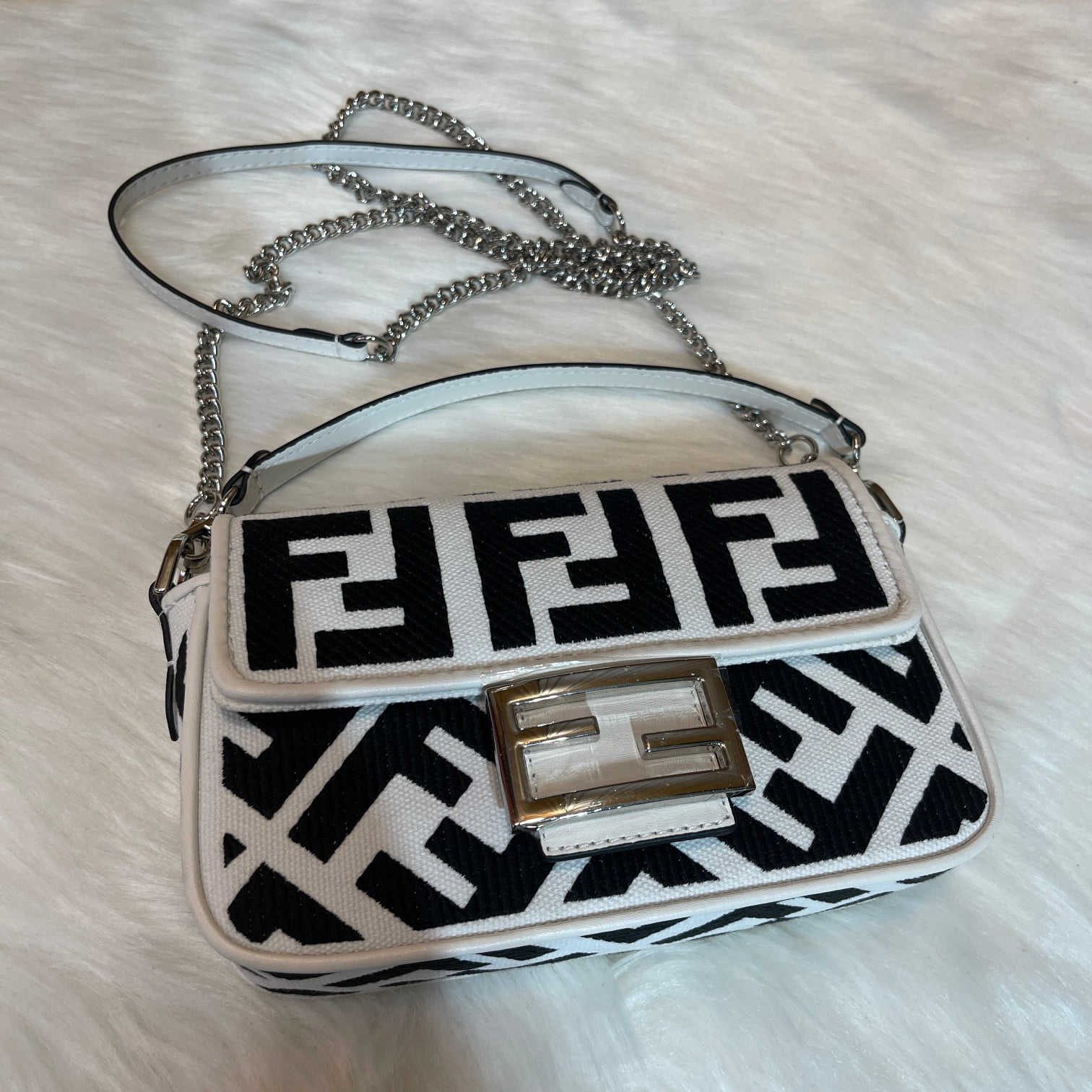The latest version of the original 2023 Fendi latest baguette bag: very summer atmosphere; F Embroidery black and white color. This Fendi Baguette is sure to be a trendy item this summer! It looks great on the top; Attendance is also particularly high; It’s absolutely fine for a concave shape. Very lightweight. And its capacity is also very powerful; Easily meet your daily needs. With a short strap and a long shoulder strap; Can be carried on one shoulder and crossbody. Very versatile. It’s easy to wear no matter what style you have. Carry it and you’ll be the brightest goddess in the crowd. Model F2029 size:19-5-15CM