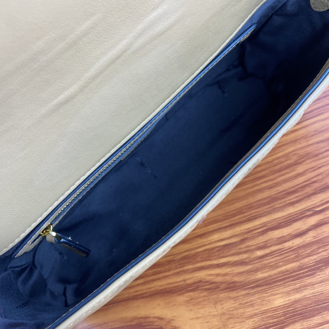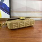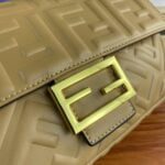 Clamshell magnetic snaps. Equipped with FF magnetic buckle. Lined with zipper bag. With removable shoulder strap, handbag can be shoulder or crossbody. (Sheepskin). Decorated with FF embossed pattern. Gold metal part number F0191