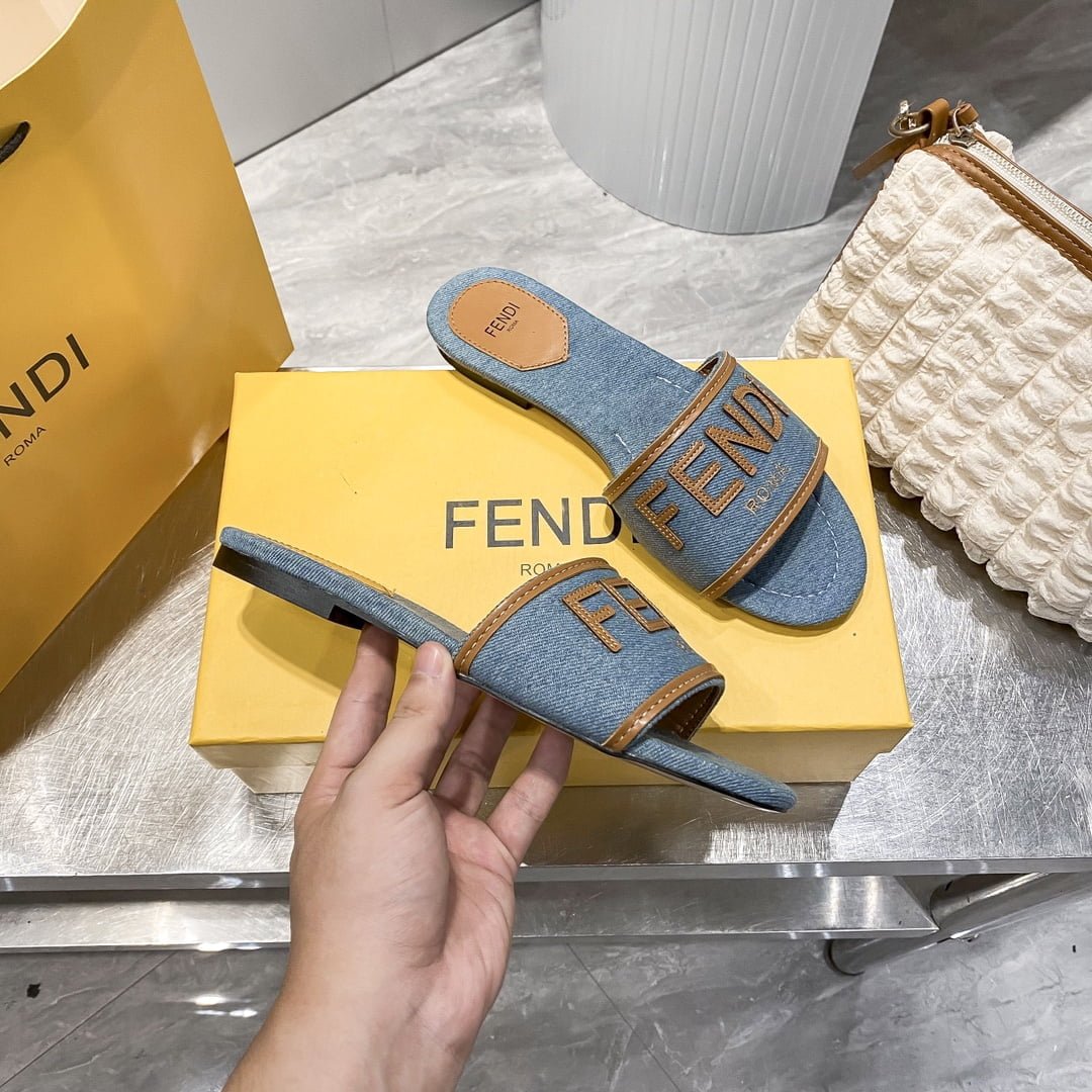 Fendi denim Flat slippers size: 35-42 note shoes size when you fill shipping address