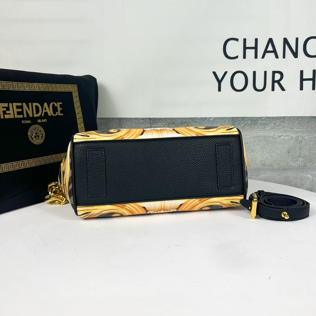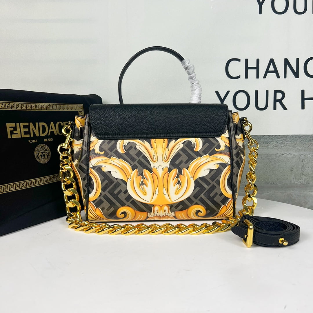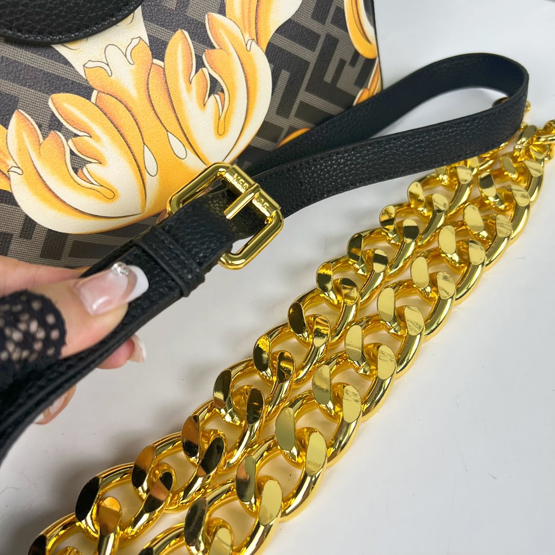 Versace and Fendi Century 🔥, the Medusa collection, Versace’s signature La Medusa handbag is inspired by the creative exchange between Kim Jones and Donatella Versace, reinvented with Fendace Gold Baroque prints, Decorated with Medusa panels, flap with Fendi hardware accessories, all-in-one clutch can be carried, or can be used to replace the chain and leather shoulder strap crossbody, the capacity is just right, practical, elegant modern fantasy luxury, turn the head 100%
