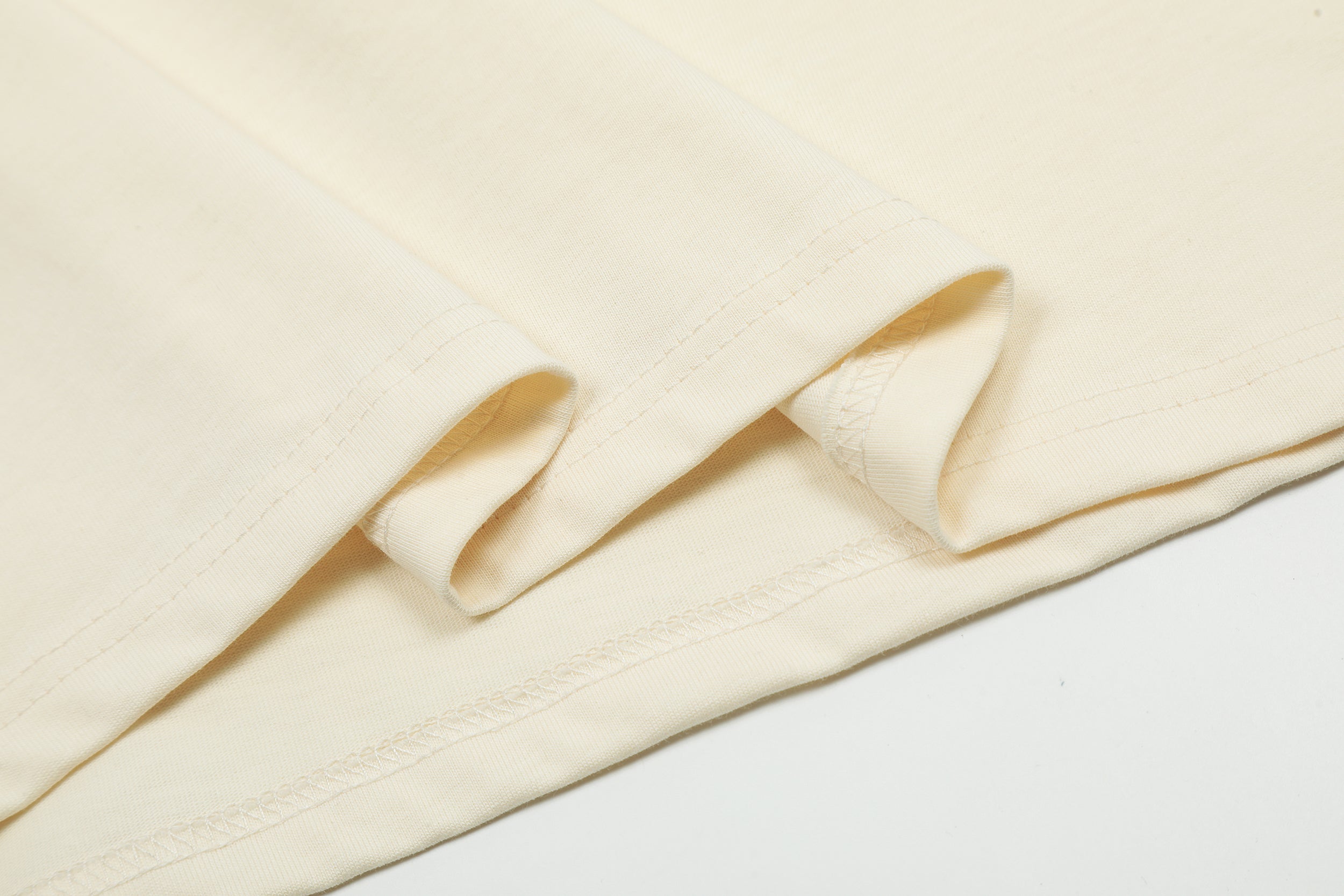 The t-shirt comes in a versatile off-white color. which acts as a neutral canvas that pairs well with a variety of outfits. The classic crew neck and short sleeves offer a timeless silhouette. while the relaxed fit adds a contemporary touch. making it a versatile addition to your wardrobe.