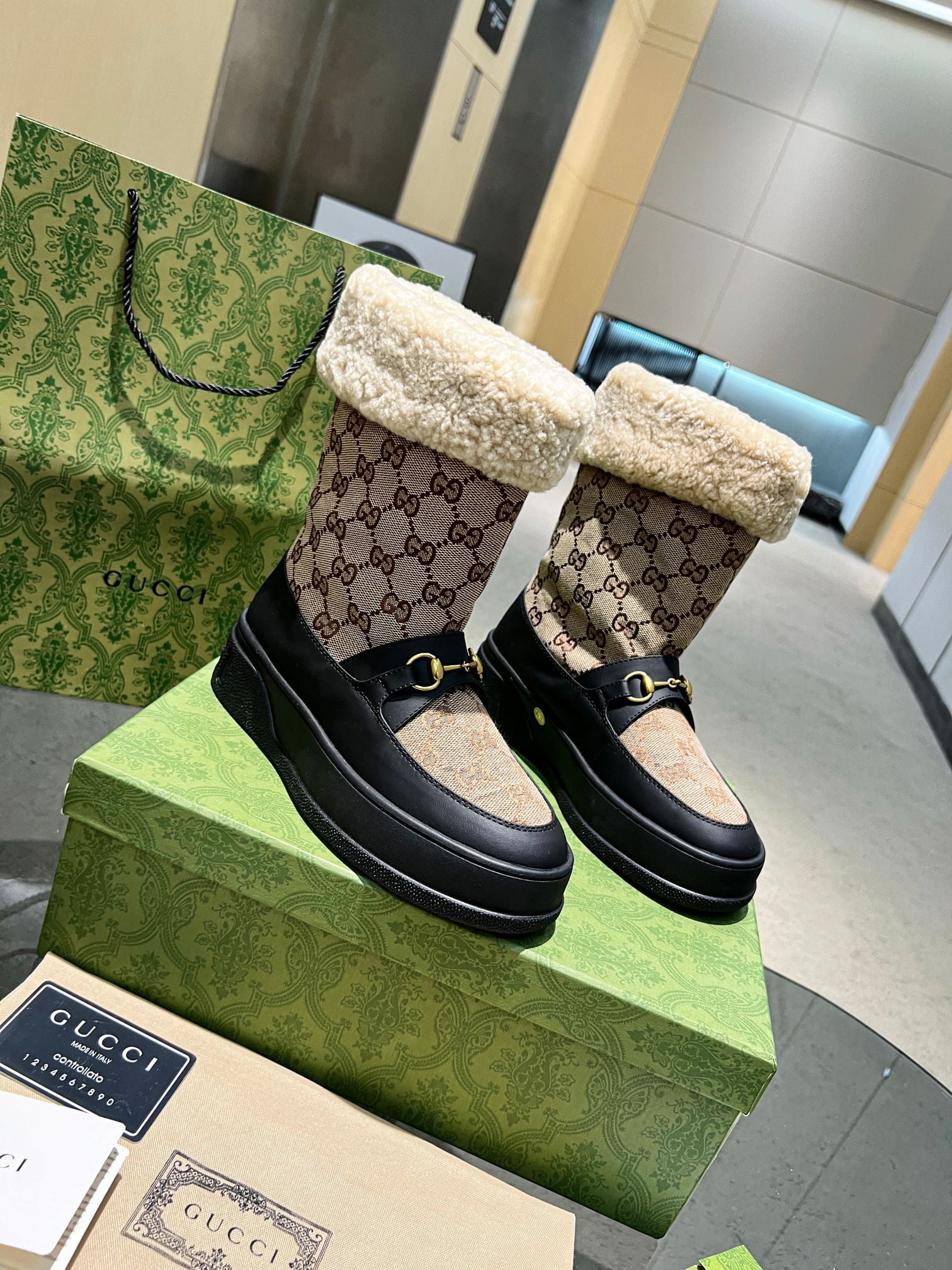 GUCCI top version hairy shoes! The big one is coming! Original one to one! 2023 counter latest model!!! 🔥🔥🔥GUCCi, rubber vacuum ultra-light outsole # high version # Italian counter purchase # original dismantled inverted mold sole # upper using imported cowhide + down cloth/special custom surface, the original consistent import, the interior imported lamb wool. Yardage: 35-41 (The factory has this series of pages).