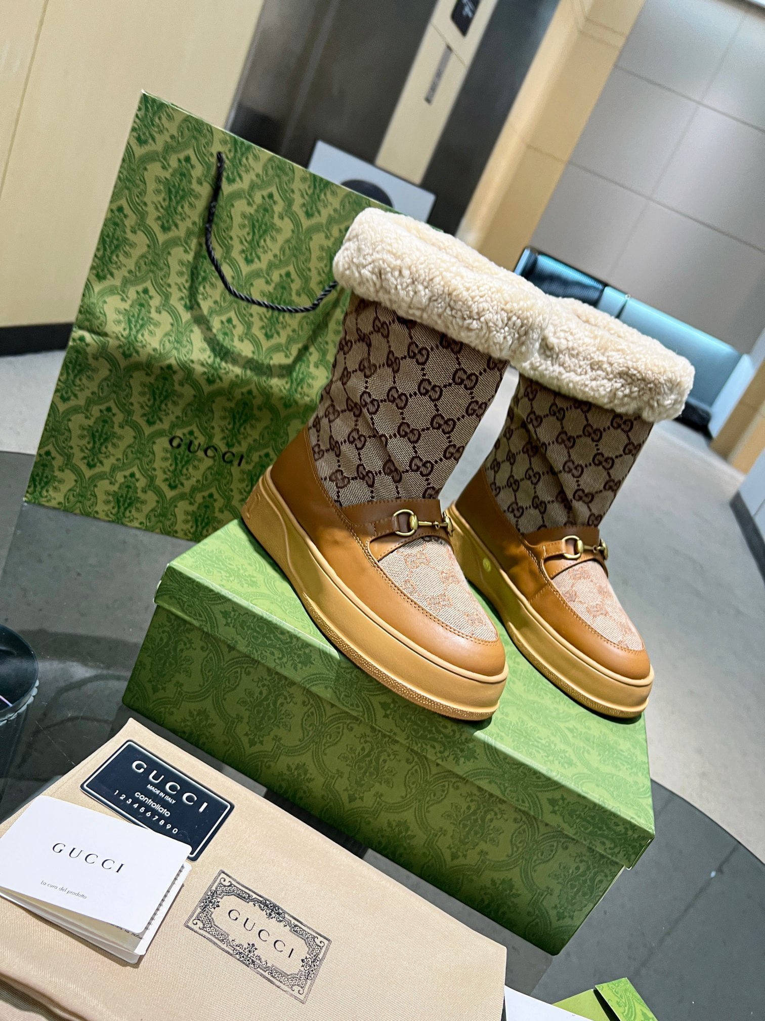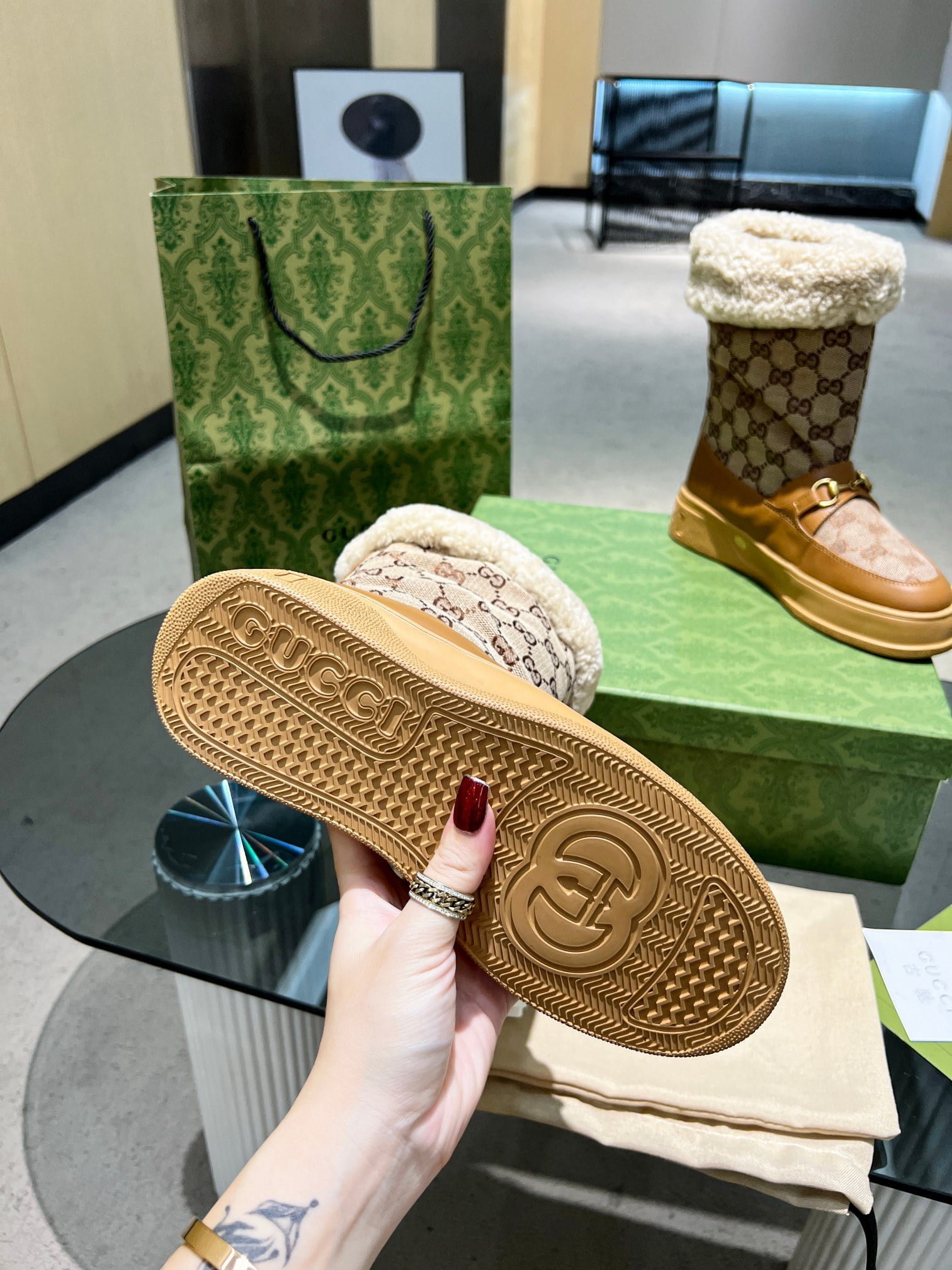 GUCCI top version hairy shoes! The big one is coming! Original one to one! 2023 counter latest model!!! 🔥🔥🔥GUCCi, rubber vacuum ultra-light outsole # high version # Italian counter purchase # original dismantled inverted mold sole # upper using imported cowhide + down cloth/special custom surface, the original consistent import, the interior imported lamb wool. Yardage: 35-41 (The factory has this series of pages).