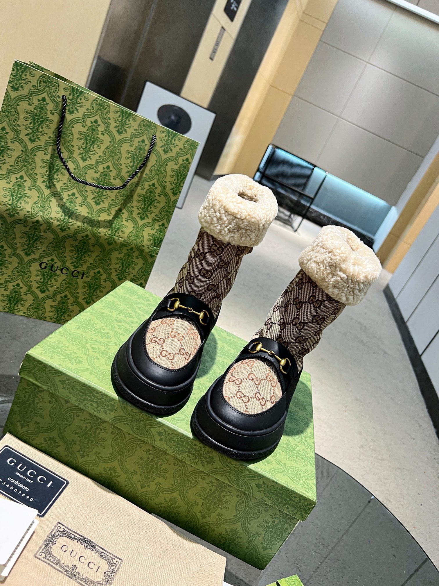 GUCCI top version hairy shoes! The big one is coming! Original one to one! 2023 counter latest model!!! 🔥🔥🔥GUCCi, rubber vacuum ultra-light outsole # high version # Italian counter purchase # original dismantled inverted mold sole # upper using imported cowhide + down cloth/special custom surface, the original consistent import, the interior imported lamb wool. Yardage: 35-41 (The factory has this series of pages).
