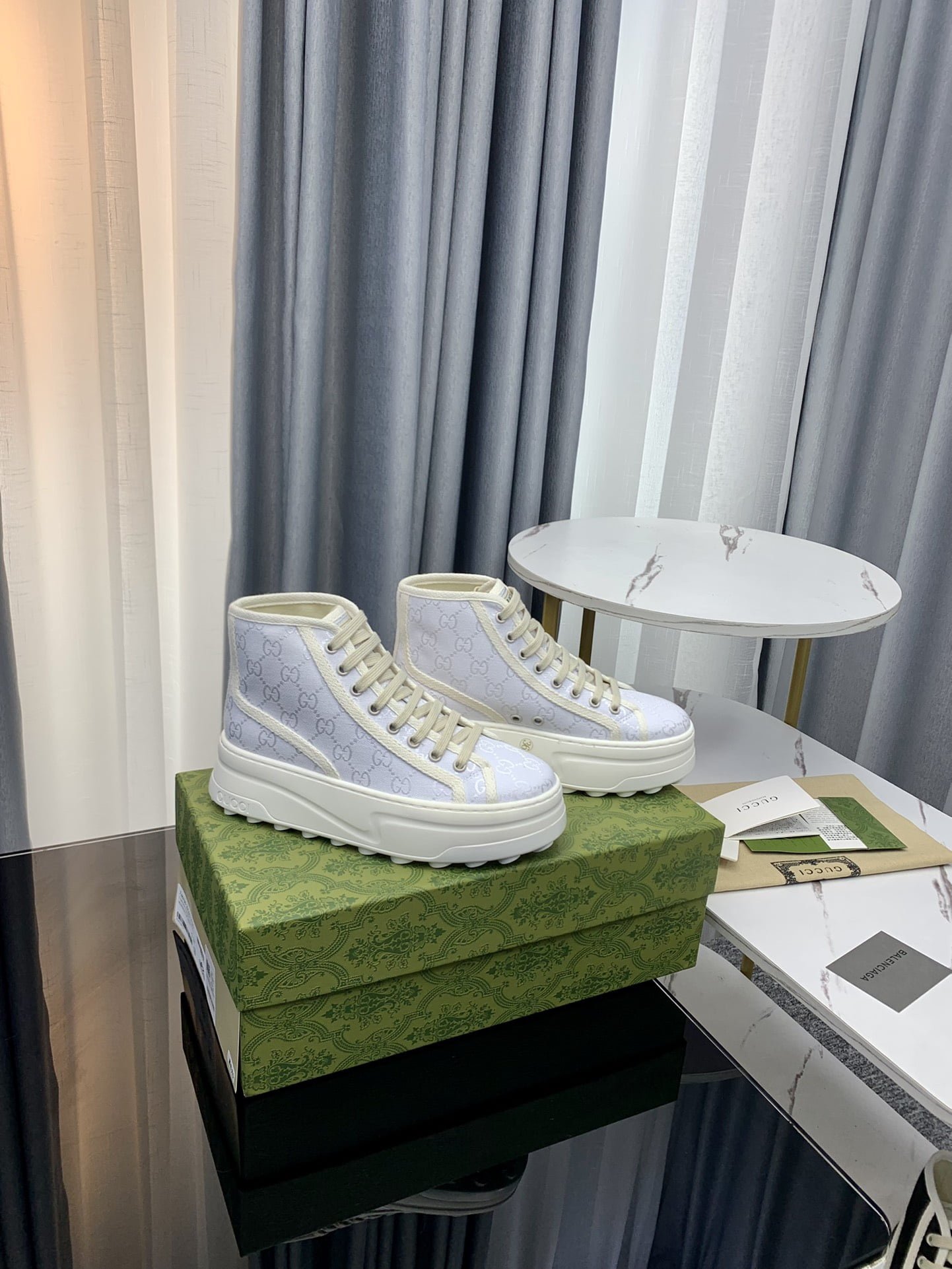 Gucci * 2023 old canvas casual platform shoes original process one to one engraved. Heavy industry embroidery pursuit of the ultimate increase on the foot comfortable bottom light! Fabric: Specific double G embroidery printed striped jacquard canvas interior: original custom canvas with towel latex foot pad