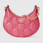 - The Pre-Fall 2023 collection captures the essence of Gucci. Colors, prints, and emblems appear consistently across time-honored silhouettes, demonstrating the House’s ability to reinvent signature pieces season after season. This compact mini bag is presented in pink GG Matelassé leather and further enriched with a Double G emblem.