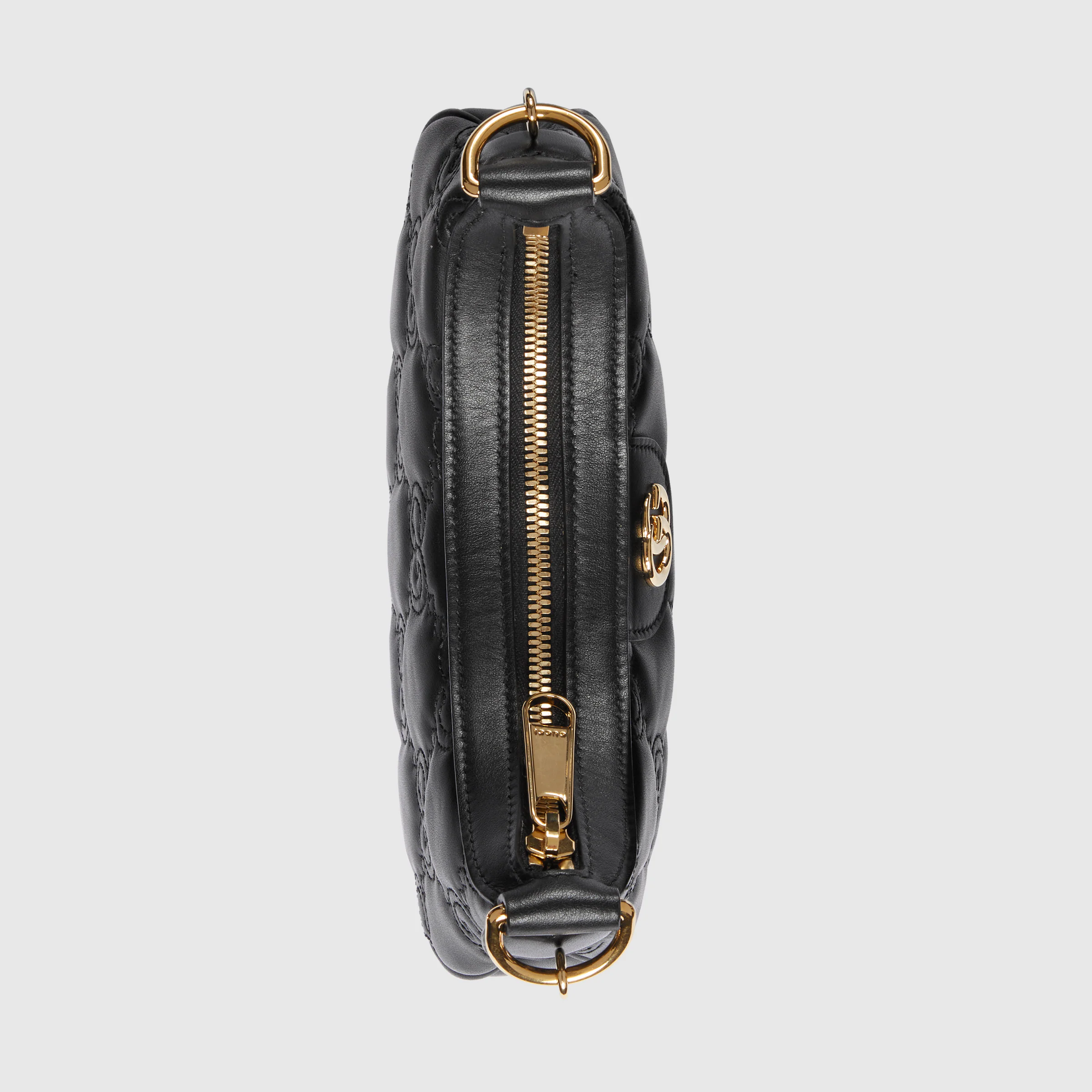 • The Pre-Fall 2023 collection captures the essence of Gucci. Colors, prints, and emblems appear consistently across time-honored silhouettes, demonstrating the House’s ability to reinvent signature pieces season after season. This compact mini bag is presented in black GG Matelassé leather and further enriched with a Double G emblem.