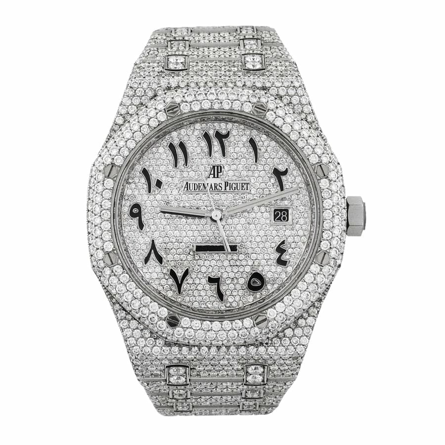 The Audemars Iced Out Replica is a luxurious watch from the Royal Oak family. It features an automatic movement with