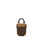 The Camera Box handbag combines all the Petite Malle’s signature details – S-lock, metallic corners, rivets, and a mix of Monogram and Monogram Reverse are all here – but on a modern shape. A thin gold-color chain brings a feminine touch to the bag while the pivoting top-handle adds a comfortable carry option.