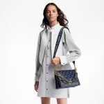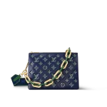 Inspired by the signs that mark the Parisian streets, the Coussin PM handbag is made from puffy Monogram-embossed lambskin in a green-and-blue colorway. Echoed on the detachable strap, the colorway is also present in the chain with certain links in green-colored resin. The interior is composed of two compartments separated by an inside zipped pocket.