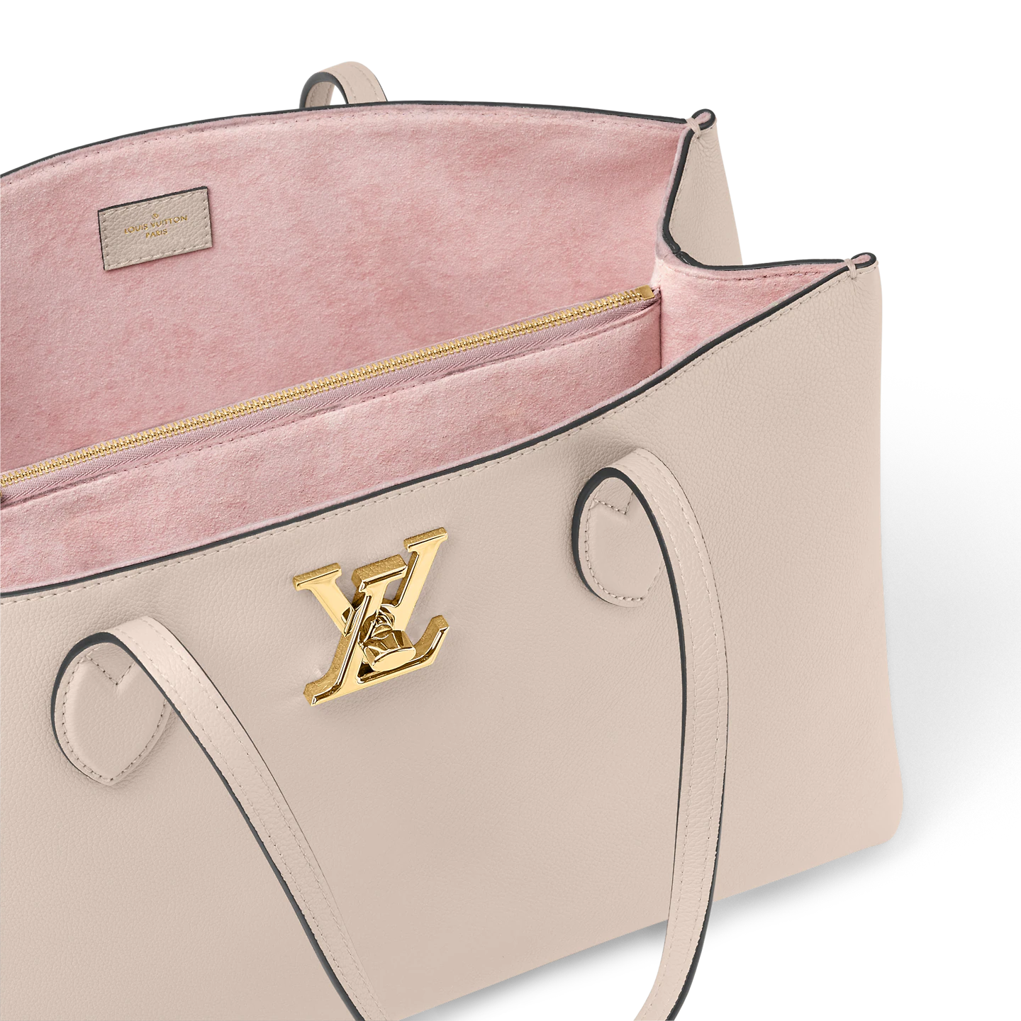 Comfortable to carry thanks to its two long leather straps. the Lockme Shopper handbag in supple calf leather is instantly recognizable by its iconic LV turn lock. which secures the closure. Rounded and folded gussets give the bag a feminine feel and make it roomy enough to hold everyday essentials. including A4 files.