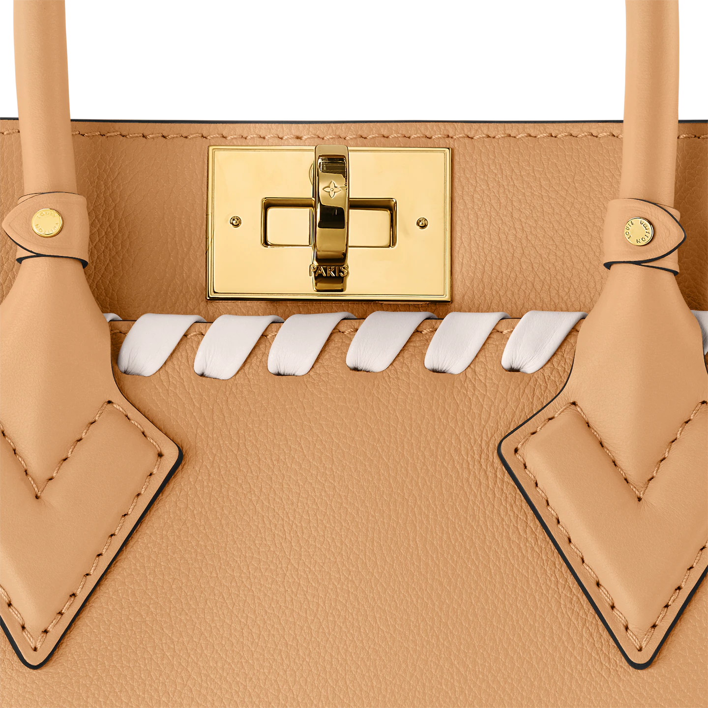 Crafted from supple calf leather. with a perforated pattern of Monogram Flowers and LVs on the sides. this On My Side PM handbag features hand-braided detailing. on the front. back and on the leather strap. Structured enough to wear with business or dress clothes. it brings style to any casual look.